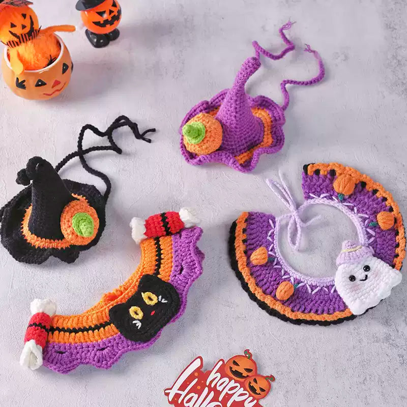 Halloween Pet Knit Collar – Handmade Cozy Neckwear for Cats & Dogs | Holiday Costume Scarf