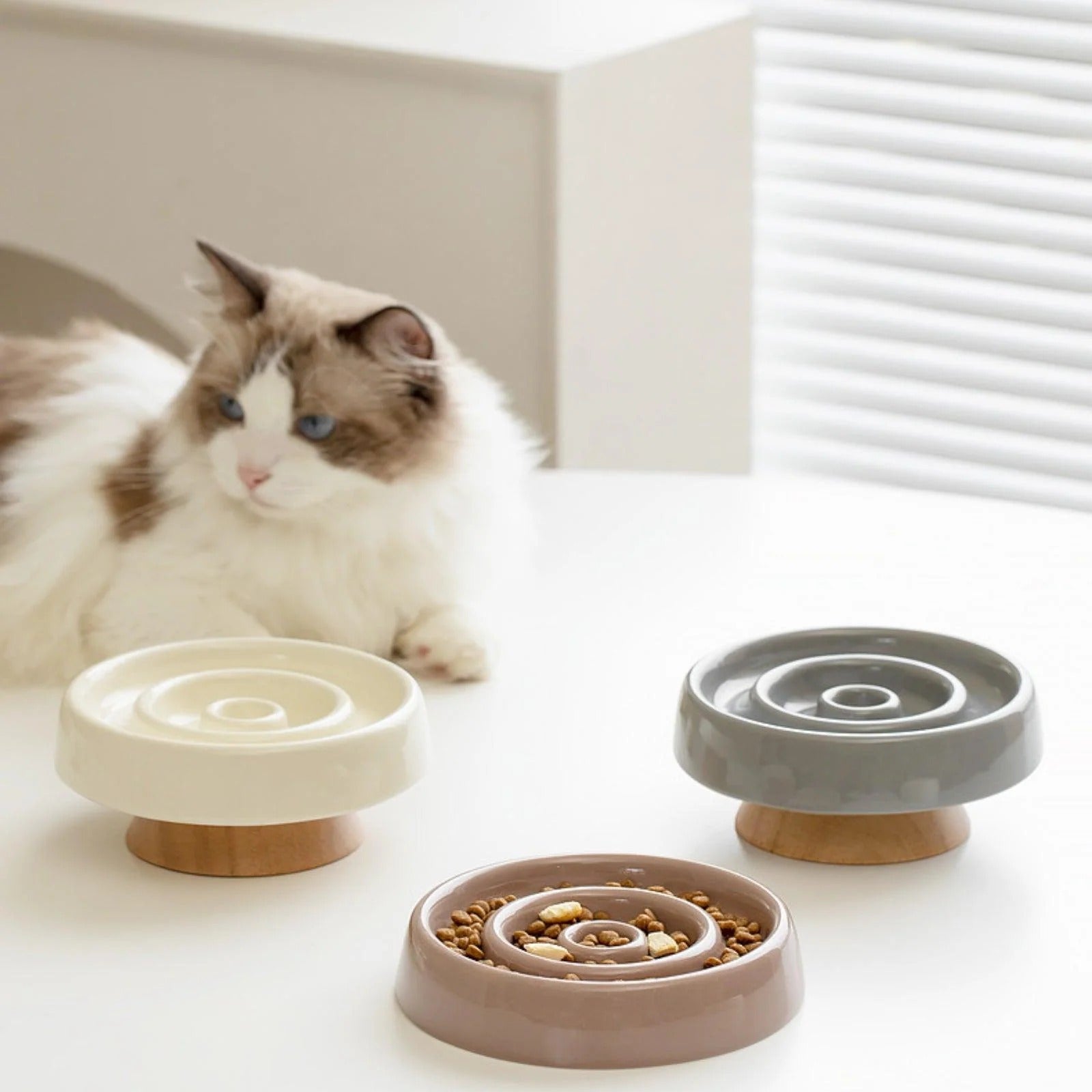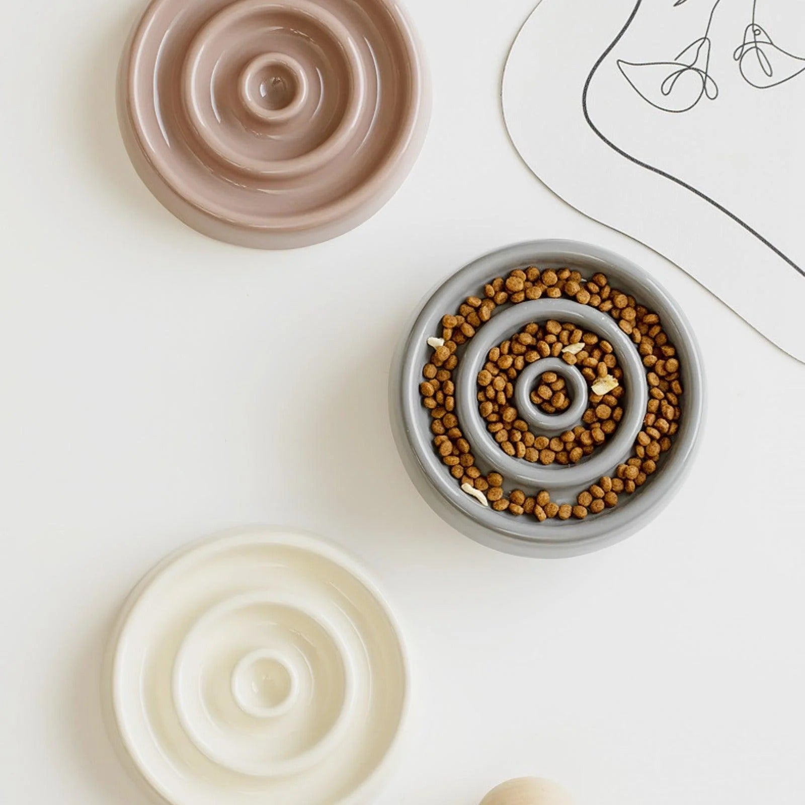 Ceramic Slow Eating Pet Food Bowl for Cats and Dogs