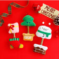 enhanced with festive holiday designs such as Christmas trees, snowmen, gifts, and reindeer.