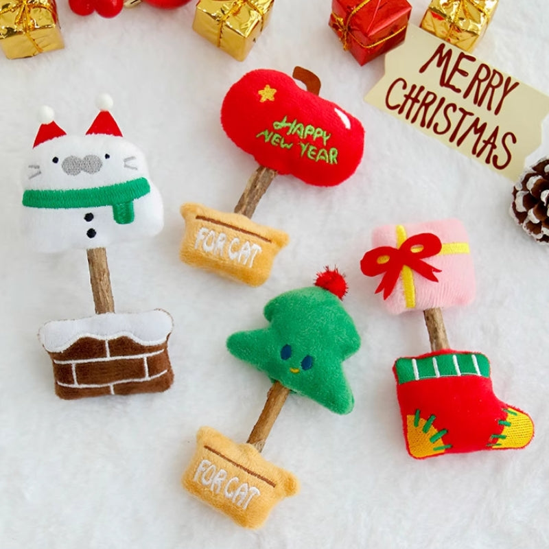 Christmas Matatabi Cat Toy – Catnip Silvervine Chew Toy for Dental Cleaning & Self-Play