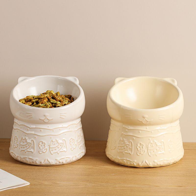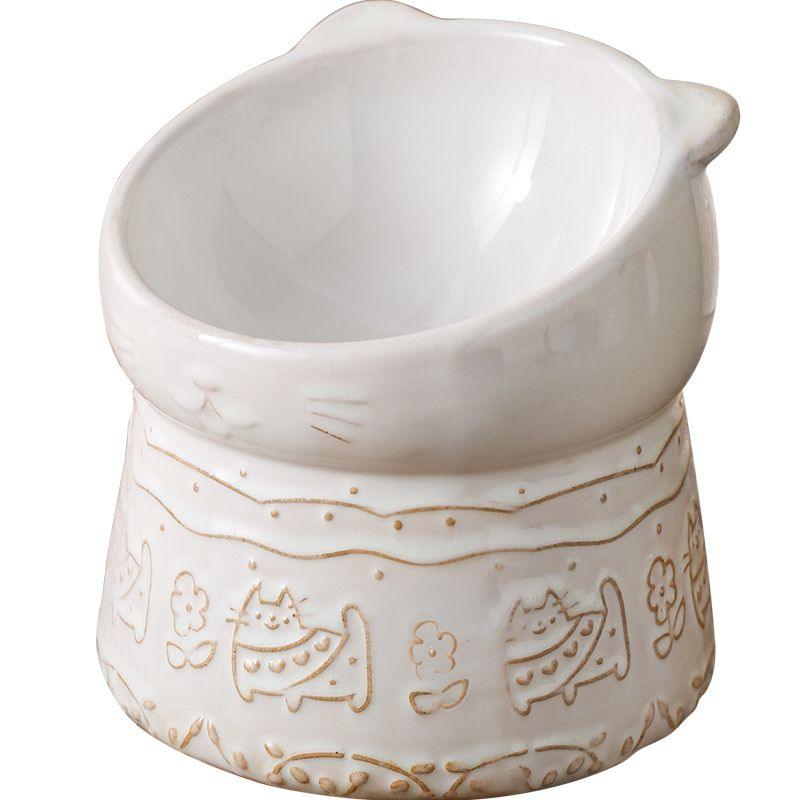 Ergo Ceramic Cat Bowl – High-Foot 15° Tilt & Anti-Tip Design